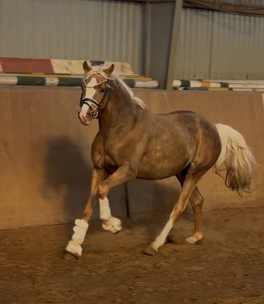 Aus unser Schatzkiste schaut heute dieser Edelstein heraus : Buchenhof’s Corleon🥰🧡 Meine Fellfarbe ist toll - mal goldig - mal mit einem silbrigen Überguss. Ich heiße Corleon und mir gefällt mein Leben . Ich bin super entspannt und habe immer viel Spaß bei Allem. . Auf der Weide ( die ist ja riesig ) bin ich auch oft alleine herumgetüddelt - fand ich total cool . Ich finde alles was so mit mir passiert in Ordnung - Lennard mein Ausbilder sagt - ich bin das Liebste Pony der Welt . Ich liebe Kinder und ich werde auch schon von Jugendlichen „ gearbeitet“ dh für mich im Moment Longieren , Bodenarbeit, Freispringen und mit Reiter erste Übungen ( Schritt und Trab an der Longe) Springen macht mir mega viel Spaß - liegt in den Genen ,meine Oma ist Staatsprämienstute und hat die Note 9,5 im Springen bekommen in ihrer Leistungsprüfung . Meine Mama Hermine ist auch Prämienstute und eine echte Sportlerin, nach dem sie mich und meinen Bruder bekommen hat , ist sie wieder im Sport erfolgreich in Hessen . Mein Vater Cashcode ist ein Dressurvererber mit viel Talent am Sprung - also meine Zukunft kann nur gut werden . Meine Züchterin sagt : „ Corleon ist der Schönheitskönig - ich gebe mir Mühe 😍🙏💪😉 Naja , bald geht es los mit dem Reiten - da bin ich mal gespannt . Auf jeden Fall werde ich mal schauen was so kommt - ich freue mich schon. Am Schönsten wäre es , wenn ich in eine Familie mit Kindern kommen würde - da könnte ich dann viel kuscheln und Spaß haben - im Sport hätte ich zu allem Lust - auch Vielseitigkeit und ein Hunter oder Equitation Profi könnte ich gut sein. Let’s go ! Ich bin bereit - wenn ihr mich kennen lernen möchtet 😄🫶 Ich bin drei Jahre alt , 146 cm groß und in Hannover eingetragen .. Und ganz gesund bin ich auch . Vielleicht bis bald Euer Leo 💓