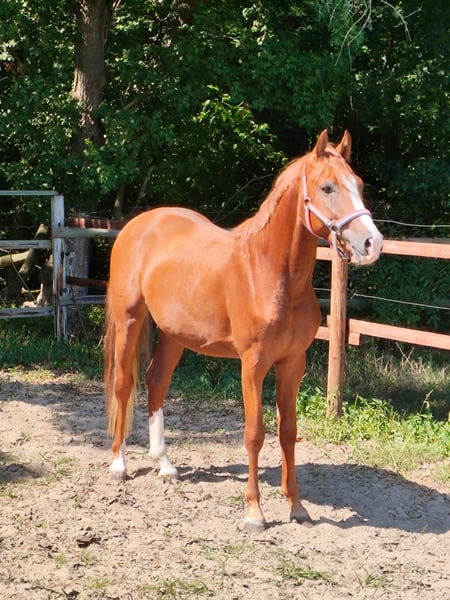 Hengstanwärter mit absoluten top Bewegungen und einem makellosen Exterieur. Er hat die optimale Größe von 145 stckm und wird sicherlich das Endmass erreichen.