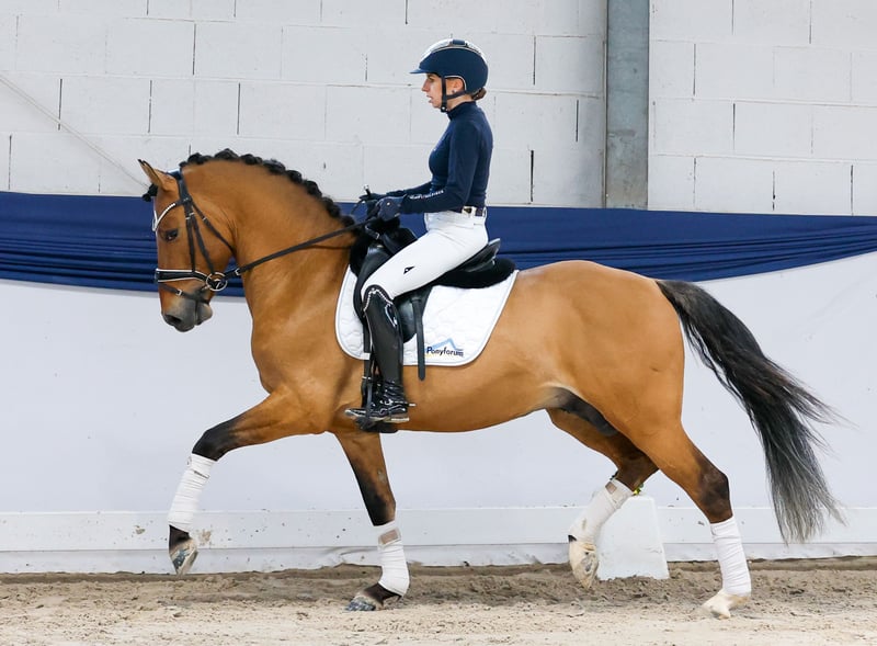 In unserer Kollektion stehen streng selektierte Reitponys f�r alle Anspr�che: Ausbildungs-, Zucht- und Kinderponys Hier gelangen Sie zur Gesamtkollektion: https://ponyforum.auction Erfolge: gekört Dieser vierjährige Hengst ist ein echtes Powerpaket! Darley wurde im vergangenen Jahr angeritten und kann nun nach entspannter Winterpause in die weiterführende Ausbildung starten. Er ist ein ausdrucksstarkes Reitpony, das schon im Stand alle Blicke auf sich zieht! Darley ist ein maskulin aufgemachter Hengst mit viel Ponyausdruck, ein enormes Vorderpferd. Unter dem Sattel zeigt er einen dynamischen Bewegungsablauf mit viel Abdruck und einer aktiven Hinterhand. Er ist schon sicher ausbalanciert und kann umgehend in eine erfolgsversprechende Turnierkarriere starten. Ein besonderes Augenmerk gilt auch seinem bedeutenden Pedigree! Vater Dimension AT sammelte als Körungssieger und Doppelbundeschampion selbst in Sport und Zucht Titel und auch seine Nachkommen sind überaus erfolgreich, so dass Dimension AT inzwischen als Linienbegründer angesehen werden darf. Und auch Darleys Mutter, die hochdekorierte Staatsprämienstute Daily Kiss, war erfolgreich im Sport- sie gewann bei den Bundeschampionaten den Vizetitel! Ein vielversprechendes Junghengst mit besten Referenzen. Direkt vom Züchter.