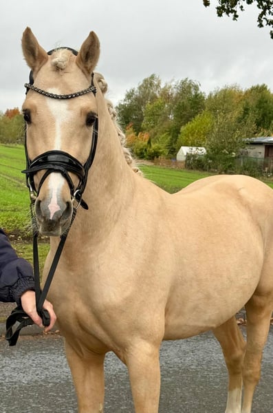 For sale is a beautiful German Riding Pony, born in 2022. The noble Palomino stands out with its striking appearance and promising pedigree. It is ideally suited for dressage and already shows considerable talent and eagerness to learn. It impresses with its friendly temperament, good movement quality, and willingness to learn new things. Its kind nature and suitability for children are particularly noteworthy. The pony is healthy, regularly dewormed, and well socialized for its age. It trailers without issues and behaves excellently on new facilities and in unfamiliar environments. If interested or for further questions, we look forward to hearing from you. Viewings and trial rides are possible by arrangement.