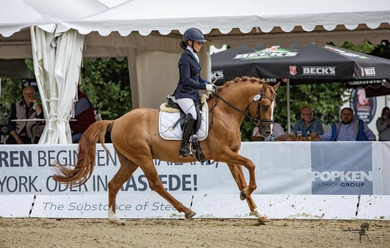 Donnermond es un poni alemán de doma, aprobado como semental de alto rendimiento. Aprobado en Rheinland-Pfalz-Saar, Westfalia y Hannover. Evaluado en Münster-Handorf con excelentes notas (8,0 en manejabilidad). Semental de alto rendimiento. Presentado en la Bundesstutenschau en Berlín, con premio. Colocado en competición de nivel A en doma clásica. Clasificado para el Campeonato Federal (de 5 años). Nivel de entrenamiento: L en doma clásica / FEI / en bocado. Le encanta salir a pasear y, incluso sin silla, pasa por todo con una cuerda de cabeza. Su madre es una yegua de élite. Un medio hermano acaba de clasificar para las campeonatos de Frisias, y otro hermano aprobado ha obtenido excelentes resultados en concursos de ponis y en el campeonato regional. Buscamos un hogar excepcional, con conexión familiar y acceso diario a pastar. Donnermond puede estar en cercado con ponis enanos o con otros machos, lado a lado; le encanta acurrucarse. Solo entregamos en manos de personas responsables y comprometidas. Necesita su tiempo diario en el campo. Queremos un hogar para siempre, preferiblemente con instalaciones propias o en una finca. Donnermond no muestra interés en concursos y no es fértil. Actualmente, está en entrenamiento en Lüneburg, con acceso diario a campo y contacto con otros caballos; está muy feliz con ello. Pero, dado que su descanso no es gratuito, queremos aprovechar esta oportunidad para encontrarle un hogar maravilloso.