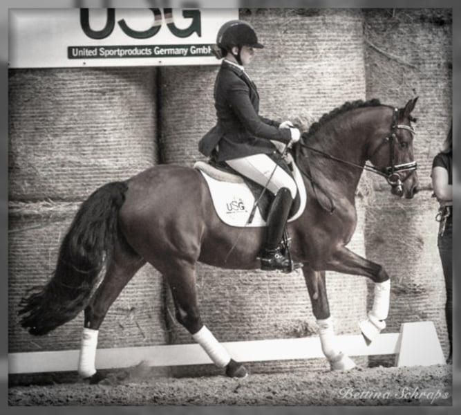 TOP TEN dressage ponies in Germany 2020 Frozen seeds/frozen seeds from Candis vM will be available from 2023 via the Zweibrücken State Stud (semen dispatch EU-wide/Europe-wide possible). An assignment via fresh seeds will probably only take place again after the end of his sports career. A visit to the stallion in the training stable in Hofheim am Taunus is possible at any time by arrangement. https://landgestuet-zweibruecken.de/hengstkatalog/candis-vm/ DECK TAX SPLITTING: 250,- basic fee, due at the time of order, plus 200,- pregnancy fee, discounts for mares successful in breeding and sport 2 doses of frozen semen, a third one can be requested if necessary for another 85,-. complete mating conditions/terms and conditions: (to be updated) https://www.candis-vm-reitponyhengst.com/allgemeine-deckbedingungen LIVE FOAL GUARANTEE: If no living foal is born (resorption, abortion, stillbirth or living for a maximum of 24 hours), I as the owner of the stallion will refund the pregnancy rate already paid against appropriate proof (paid invoice, certificate of the veterinarian). If necessary, please contact us via this advertisement or via my contact details on the stallion's homepage. Homepage of Candis vM: https://www.candis-vm-reitponyhengst.com ** from the FN success statistics 2020 by ranking points** - No. 5 of all riding ponies in dressage in Germany - most successful dressage pony descendant of the Charm of Nibelungen - most successful Mecklenburg riding pony in dressage - Bundeschampion x Staatsprämienstute - Premium and elite foals in Mecklenburg-Vorpommern, best colt of the show - 1st place Welsh partbred at the Welsh Show Standenbühl, Rhineland-Palatinate 2010 - licensed in Rhineland-Palatinate-Saar - Approved via sports success - successful against horses up to S-dressage - Double disposition, successful in jumping in class A - free of: CA, SCID, LFS and WFFS ASSURED PERFORMANCE IN SPORT AND BREEDING ON FATHER AND MOTHER'S SIDE: Candis vM is a licensed and performance-tested stallion from the well-known and successful riding pony breeding of Patricia von Mirbach from Kühlungsborn in Mecklenburg-Vorpommern. The stallion is actual one of the best offspring of the Westphalian champion and Bu-Cha winner Charm of Nibelungen by Reiner Bockholt, whose breeding is always a guarantee for performance and type fidelity. Charm of Nibelungen's descendants have currently reached a lifetime profit sum in sports of over 55,000 €. His Grandfather Pamir ox was awarded the WAHO Trophy as an outstanding representative and ambassador of his breed. He left behind numerous descendants with successes in breeding and sports not only with the Arabian breeds, but also with the Trakehners, various warmblood associations and last but not least in riding pony breeding. The state premium and elite mare Pamira H as dam of Candis is one of Pamir's successful riding pony daughters. In her breeding career, she has produced only highly awarded offspring, who are also successful in sports. The Welsh-B stallion Waldemar as Grandfather of Pamira H is known as a sire of durability, versatility and willingness to perform, a progeny LGS in sports of over 80,000, - € speaks for itself. In addition to his successes in class L and M, the stallion is currently placed several times in S-dressage. He continued to be successfully presented in sports for several years despite simultaneous breeding, a sign of his strong nerves and willingness to perform and of his impeccable character. Intelligent and people-oriented, he is also a real talent in showjumping like most Charm descendants. If he had been allowed to choose, he would probably have become a jumping pony, which is why he is also allowed into the jumping course from time to time. He completes his jumping in training as well as in competition always with a lot of fun and with calm and overview on the jump. Candis vM is tested negative for CA, SCID, LFS and WFFS, with his height of 148 cm he inherits his size according to genetic test, he inherits the basic colors bay and chestnut. The stallion presents himself in flawless bay without badges, he is inbred free in 5 generations of ancestors and has neither Dornik B, nor Don ́t Worry nor Champion de Luxe in his pedigree. If you are looking for proven performance blood off the beaten track in riding pony breeding, paired with an irresistible pony charm and extraordinary nobility, Candis vM is an excellent choice. Candis descendants inspire with their trusting and friendly nature, a lot of type, joy of movement and excellent movement potential. HB1 for German riding ponies, registered in Hesse & Rhineland-Palatinate-Saar, the use in all other riding pony associations is permitted without restrictions. Please request individual deck permits (e.g. for Arabian Partbred, Small German Riding Horse) in advance with the respective association. Candi's appearance on Facebook: https://www.facebook.com/Candis.Reitponyhengst Pictures: Pferdeknipser.de; Bianca Nickel; Bettina Schraps; Pferdefotografien.de