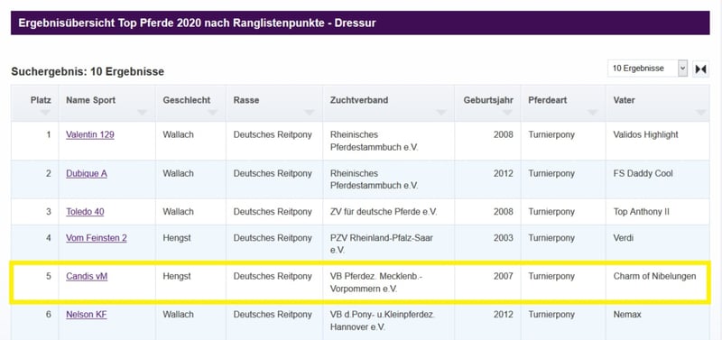 Reitponyhengst Candis vM, im Sport erfolgeicher Doppelvererber
