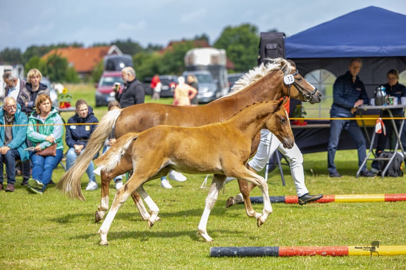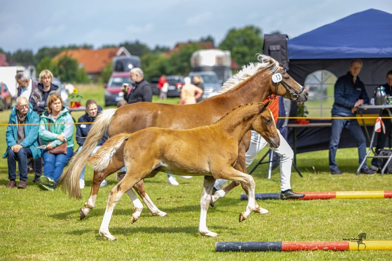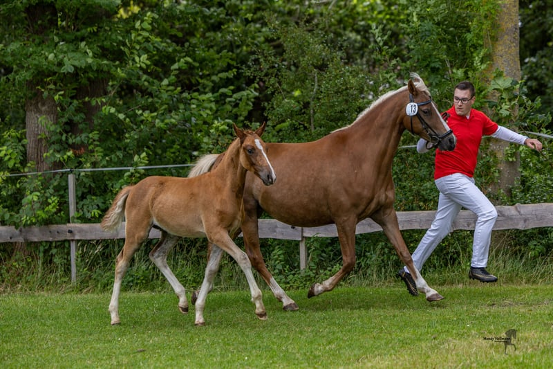 For sale is a promising German Riding Pony stallion, born in May 2025. **Features:** - **Breed:** German Riding Pony - **Color:** Chestnut - **Height:** 145 cm - **Discipline:** Dressage This talented stallion already shows a lot of potential in dressage and impresses with his excellent movement quality, particularly his walk, and his friendly character. He is suitable for both experienced competition riders and ambitious beginners looking for a reliable and eager-to-learn pony with a lot of potential. If you are interested or need further information, please feel free to contact me. Viewings are possible by appointment. We look forward to your message!