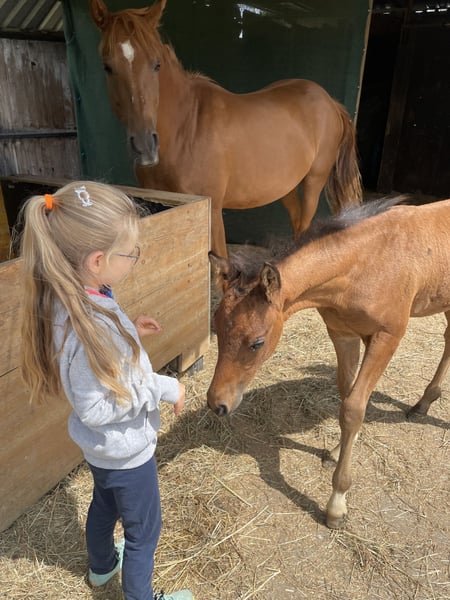 Zum Verkauf steht ein wunderschöner brauner Deutscher Reitpony Hengst von Der Zauberlehrling. Aufgrund seiner Abstammung ist er bestens für den Dressursport geeignet und bringt viel Talent sowie Lernbereitschaft mit. Seine Großmutter mütterlicherseits wurde 3-jährig Freispringchampioness und auch seine Mutter zeigt viel Talent am Sprung. Sie wurde 3-jährig angeritten und ist seit einer Koppelverletzung Zuchtstute. Unter dem Sattel zeigte sie sich überaus rittig und brav. Seine Halbschwester war Gold- und Siegerfohlen auf der Fohlenschau. Aufgrund einer Verletzung meinerseits war eine Vorstellung auf der Fohlenschau mit ihm leider nicht möglich. Der Hengst wächst in einer gemischten Herde auf, ist gesund, gut sozialisiert und zeigt sich im Umgang äußerst freundlich und aufmerksam. Meine kleine Tochter kann problemlos mit ihm umgehen. Selbstverständlich ist er entwurmt, wird regelmäßig dem Hufschmied vorgestellt und bekommt bestes Futter (Hafer+Iwest Mineralfutter) Bei Interesse oder für weitere Informationen stehe ich gerne zur Verfügung. Besichtigung nach Vereinbarung möglich.