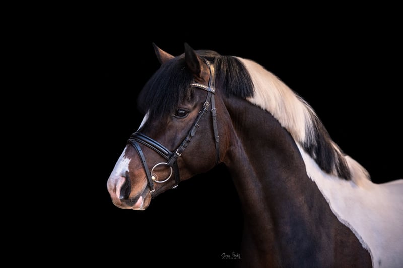 Romano ist ein höchst nobler und charismatischer Sohn des Petit Rock the Moment, der sich anschickt das züchterische Erbe seines Vaters fortzuführen. Anlässlich seiner Körung im Februar 2025 galt er bereits als Publikumsliebling und konnte den Körplatz in den Holstenhallen zu Neumünster, neben dem Prädikat gekört, als Prämienhengstanwärter verlassen. Seine Mechanik, Manier und Vermögen am Sprung und sein ausgegli9chener Charakter überzeugten nicht nur die Körkommission sondern auch das Publikum. Seine auffällige Scheckzeichnung verleiht seinem harmonischen, gut aufgeteiletem Exterieur das gewisse Extra und sorgt dafür, dass dieser Hengst im Gedächtnis bleibt. Besonders vor dem Hintergrund, dass Petit Rock the Moment derweil als Wallch nicht mehr züchterisch eingesetzt werden kann, freuen wir uns unseren Züchtern diesen Eyecatcher im Natursprung zur Verfügung zu stellen. Derzeit befindet sich Romano in der Vorbereitung auf seine ersten Turnierstarts und steht Fremdstuten bei uns zur Verfügung