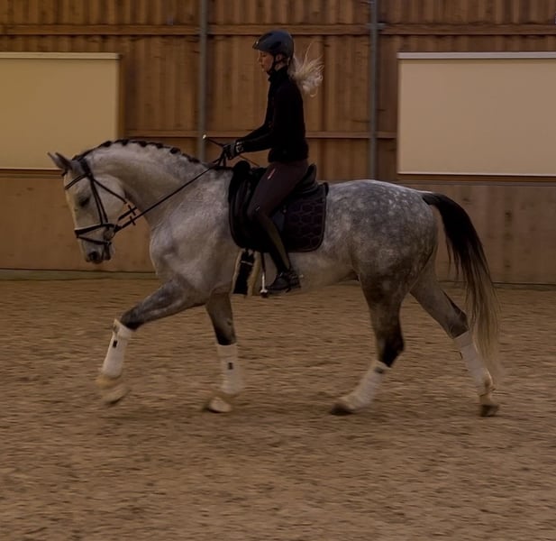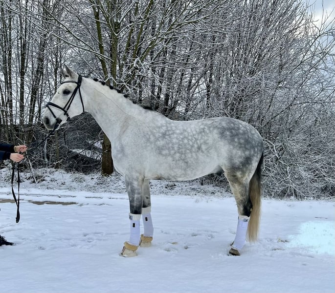 For Sale: German Sport Horse Warmblood Gelding We are offering a charming gray gelding by Sir Bedo, who impresses with his three solid basic gaits. Notably, he has a calm and balanced temperament, making him a reliable partner in any situation. In daily handling, he is always clear-headed, friendly, and straightforward. He is also considerate with children, gently guiding them through the arena. He has been trained recreationally in dressage at a secure L-level but shows great potential for further development. He is also motivated over jumps. Current X-rays are available. Please feel free to contact me for more information or if you are interested. Viewings and trial rides can be arranged by appointment.