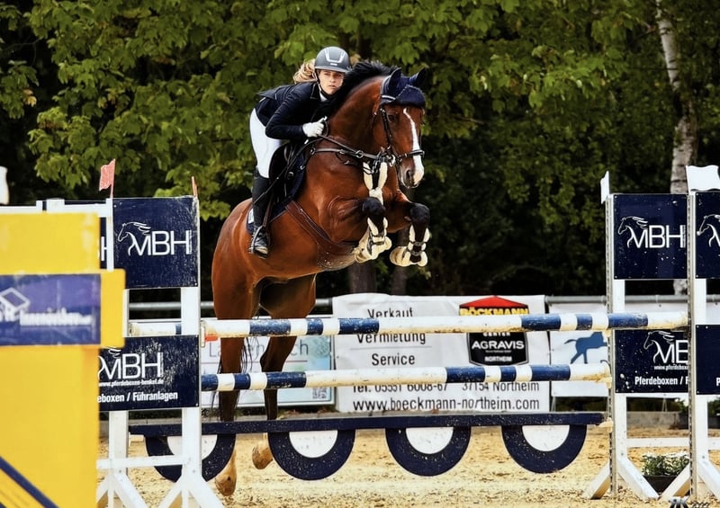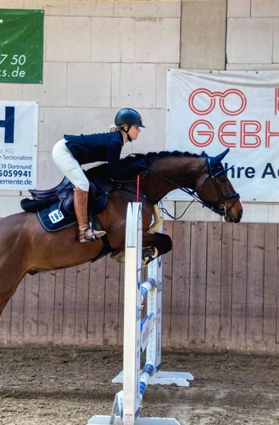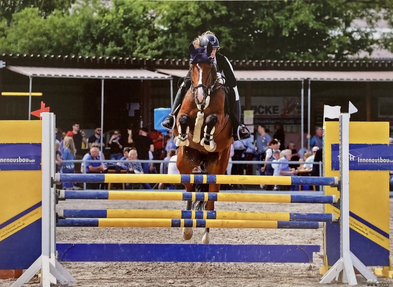 Zum Verkauf wegen anstehendem Abitur und anschließendem Studium steht mein 2013 geborener Wallach El Amigo, von Eldorado van de Zeshoek x Fly High. Er ist ein fein zu reitendes, sensibles und sportliches Pferd mit solider Ausbildung und vielseitiger Erfahrung. Im Umgang ist er sehr zutraulich, menschenbezogen und sucht gerne die Nähe zu „seinem“ Menschen. Ewald wurde früher überwiegend im Springsport gefördert und kennt Aufgaben bis Klasse M** , mit Platzierungen bis M*. Mit mir war er bis Klasse L mit steigenden Anforderungen erfolgreich unterwegs. Heute wird er überwiegend freizeitorientiert geritten und genießt abwechslungsreiche Arbeit, wobei er im Jahr 2025 auch noch mehrfach auf Turnieren in Springprüfungen der Klasse A und A** platziert war. Neben der Platzarbeit kennt Ewald Ausritte, Orientierungsritte (zweimal teilgenommen und beide Male gewonnen, zuletzt 2025) sowie Geländespringen ohne Leistungsdruck. Dabei zeigt er sich motiviert, benötigt jedoch einen ruhigen, sicheren Reiter, da er stress- und umgebungssensibel ist. Er ist kein Anfängerpferd. Beim Ausreiten geht er am liebsten alleine oder mit einem ruhigen weiteren Pferd, da ihn andere Pferde mit hektischen Bewegungen nervös machen. Das ist auch sein Problem auf Turnieren, weshalb ihn insbesondere Abreiteplätze stark stressen können. Auf der Weide steht er ebenfalls meistens alleine, was sich für ihn als die entspannteste Lösung bewährt hat. Er ist dabei nicht böse, sondern einfach etwas nervig im Umgang mit Artgenossen. Neben anderen Pferden steht er super und ist sehr verträglich; auch bleibt er sehr gut allein. Er lässt sich problemlos verladen und im Anhänger fahren und ist beim Tierarzt und Schmied komplett brav. Wir haben Ewald vor vier Jahren mit einem super TÜV gekauft und er war seither nicht einen Tag lahm, hatte nie eine Kolik oder Allergien. Auch gibt es sonst keine Verhaltensauffälligkeiten oder Unarten. Impfungen, Entwurmungen, Zahnarzt und Physio/Osteopathie sind alles aktuell. Ewald sucht einen passenden Freizeitpartner, der Freude an feinem Reiten hat, ihm Sicherheit gibt und kein Pferd für den täglichen Turniertrubel sucht.
