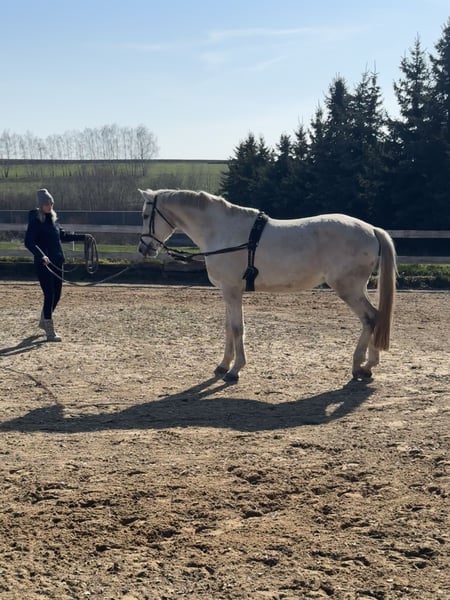 Colest ist ein 16 jähriger Schimmelwallach, welcher als Beistellpferd verkauft wird und beispielsweise auch longiert werden kann. Er ist den Schmied und das Verladen gewöhnt. Colest hat keine körperlichen Beschwerden. Wünschenswert wäre ein Platz mit täglichem Koppel- oder Paddockgang. Da er nur bedingt reitbar ist, wird er als Beistellpferd verkauft. Bei Interesse gern telefonisch oder per Mail melden.