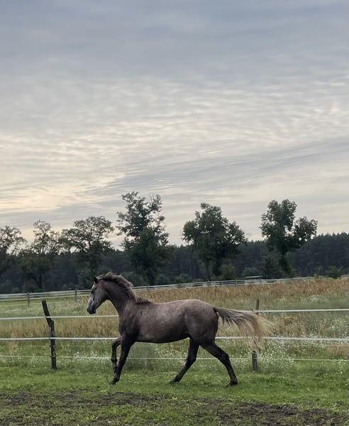 Zum Verkauf steht ein vielversprechender, am 03.05.2023 geborener Schimmelwallach des bewährten Vererbers Call me Crazy, mütterlicherseits abstammend von Calidrio – ein Pedigree mit hervorragender Grundlage für Sport und Freizeit. Dieser charmante DSP-Youngster überzeugt mit seinem menschenbezogenen Wesen und ist sehr brav im Umgang. Er wächst artgerecht in einer Wallachgruppe unterschiedlichen Alters auf, ist sozial kompetent, ausgeglichen und gesund. ✅ Rasse: Deutsches Sportpferd (DSP) ✅ Geboren: 03.05.2023 ✅ Farbe: Schimmel ✅ Erwartetes Endmaß: ca. 1,70 ✅ Abstammung: Call me Crazy x Calidrio ✅ Charakter: freundlich, ausgeglichen, umgänglich ✅ Gesundheitsstatus: regelmäßig geimpft und entwurmt ✅ Standort: Nassenheide ✅ Preis: 7.500 € VB Ein Nachwuchspferd mit besten Anlagen für den Spring- oder Vielseitigkeitssport, aber auch ein toller Partner für den ambitionierten Freizeitreiter. Bei Interesse gern mehr unter www.ufanohof.de oder 0179/7542321