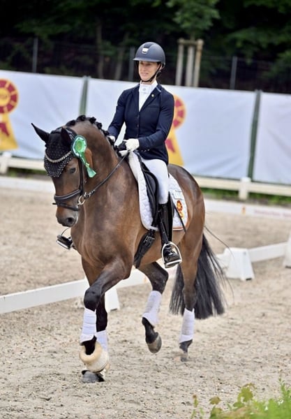 Dieser 3-jährige Märchenprinz besticht durch überdurchschnittliche Bewegungsqualität, hervorragende Rittigkeit und ein exzellentes Interieur. Dies konnte er auch bereits auf dem Turnier beweisen, er hat sich für das DSP Championat qualifiziert und konnte sich in diesem auch platzieren. Er ist für seine 3 Jahre wirklich sehr lieb und unerschrocken, dennoch aber selbstverständlich aufgrund seines Alters kein Anfängerpferd. Kann auf Wunsch sehr gerne weiter zur Ausbildung bei uns bleiben und auch weiter auf dem Turnier vorgestellt werden. Ein guter TÜV mit 30 Röntgenbildern liegt vor. Bei ernsthaftem Interesse melden Sie sich sehr gerne unter 01577/5071884 Für das Probereiten berechnen wir 50€, die beim Kauf verrechnet werden.