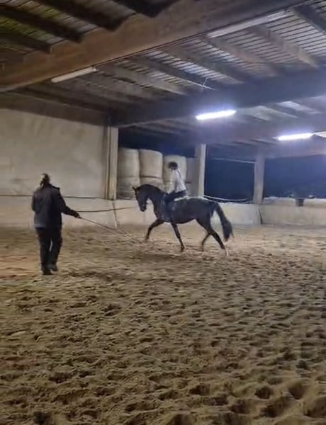 Sir Chic GS, im Stall „Sammy“ genannt, ist ein talentierter junger Wallach mit hervorragender Perspektive für den Dressursport. Gezogen auf dem Schafhof in Kronberg im Taunus, durfte er seine Jungpferdezeit artgerecht auf großzügigen Koppeln verbringen und entwickelte sich dort zu einem ausgeglichenen und unkomplizierten Pferd. Aktuell befindet sich Sammy in schonender, altersgerechter Ausbildung bei einer Bereiterin und zeigt sich dabei äußerst lernwillig, brav und kooperativ. Besonders hervorzuheben ist, dass er bereits in allen drei Grundgangarten frei in der Halle geritten wird und dabei sein großes Potenzial bestätigt. Seine Bewegungen sind taktsicher, schwungvoll und von natürlicher Balance geprägt. Auch charakterlich lässt er keine Wünsche offen: Sammy ist absolut nervenstark, menschenbezogen und sehr zuverlässig im Umgang. Er lässt sich problemlos satteln, putzen und verladen und ist sehr gut halfterführig. Selbst ein vierjähriges Mädchen kann ihn sicher über den Hof führen – ein eindrucksvoller Beweis für seine Verlässlichkeit und sein ruhiges Gemüt. Er hat zudem bereits erste kurze Ausflüge im Schritt rund um den Hof gemeistert und zeigt sich auch außerhalb der gewohnten Umgebung gelassen und souverän. Abstammungstechnisch lässt dieser junge Wallach keine Wünsche offen: Er stammt ab von Sir Donnerhall aus einer Totilas-Mutter und vereint damit Rittigkeit, Elastizität und Ausdruck mit modernster Dressurgenetik auf höchstem Niveau. Sir Chic GS ist ein Pferd für Reiter, die sich ein ehrliches, talentiertes Nachwuchspferd mit klarer Perspektive im Dressursport wünschen. Der Preis steigt mit weiterer Ausbildung