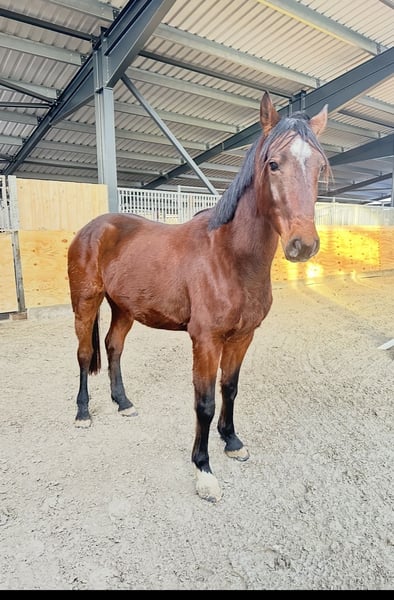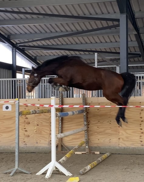 Small bay gelding with lots of energy, full sister competed up to 1.55 m.