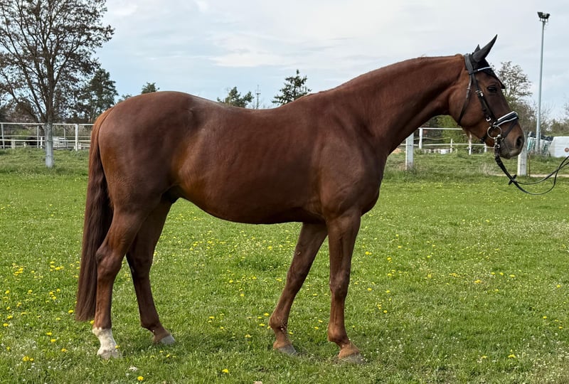 Na sprzedaż wystawiony jest 4-letni wałach o obecnej wysokości w kłębie 1,63 m, bezpośrednio od hodowcy. Do sierpnia 2025 roku przebywał w grupie hodowlanej, gdzie dorastał w bardzo delikatny sposób. Z niewyjaśnionych przyczyn na pastwisku doznał połowicznej porażenia twarzy (w tym czasie nie było widocznych żadnych urazów ani chorób). Natychmiast podjęto leczenie weterynaryjne, niestety do dziś nie zaobserwowano poprawy. Przeprowadzono badania rentgenowskie oraz endoskopię, które nie wykazały żadnych nieprawidłowości. W codziennym użytkowaniu oraz podczas jazdy nie ma żadnych ograniczeń i nie wymaga żadnych leków – jest to wyłącznie DEFekt estetyczny. Zna lonżę, podwójną lonżę oraz ciężar jeźdźca. W styczniu 2026 roku został wykastrowany. Niestety nie mamy wystarczająco czasu na dalsze szkolenie, dlatego oferujemy go jako surowego. Może być normalnie wytrenowany bez żadnych ograniczeń. Nie ma problemów z pobieraniem pokarmu, język nie wystaje na zewnątrz. Posiada trzy bardzo dobre podstawowe chody i był championatem w Moritzburgu. Charakter ma niezwykle ujmujący, jest bardzo spokojny w obsłudze i absolutnie posłuszny. Regularnie jest szczepiony i odrobaczany. Szukamy kochającego właściciela, dla którego jego drobny defekt nie będzie problemem – być może nerv potrzebuje czasu na regenerację, a wszystko z czasem się ułoży. Oczywiście istnieje taka możliwość. W razie zainteresowania prosimy o kontakt, chętnie również telefonicznie, aby wymienić się informacjami. Więcej zdjęć i filmów dostępnych na WhatsApp po poważnym zainteresowaniu.