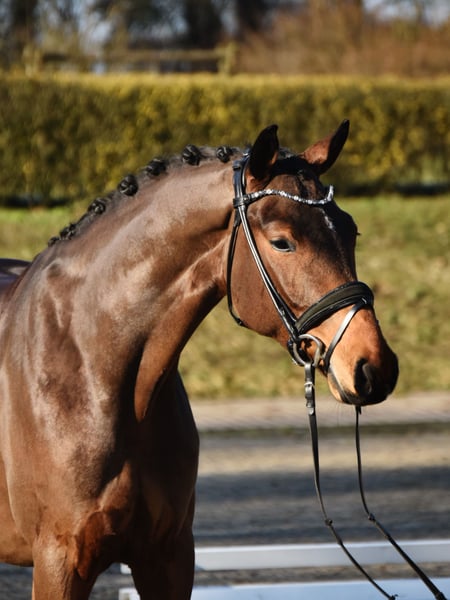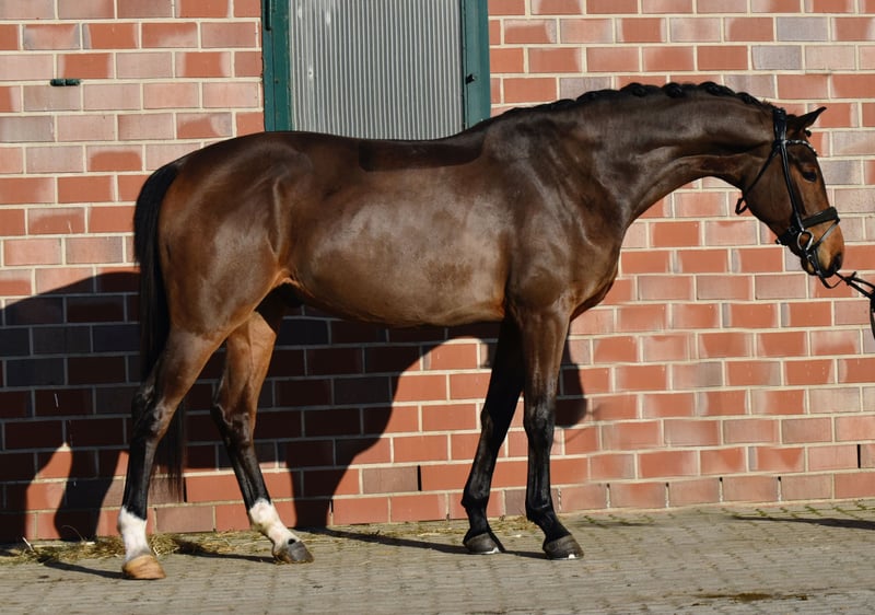 Zu Verkauf steht dieser schicke 4-jährige, ca 168cm große Wallach von Zalando x Lehmann. Zaniro ist ein freundliches, neugieriges Pferd und arbeitet gerne mit seinem Menschen zusammen. Er wurde im letzten Jahr schonend angeritten und durfte den Sommer nochmal auf der Weide verbringen, bevor es zurück unter den Sattel ging. Zaniro ist sowohl im Umgang als auch unter dem Sattel sehr artig, er überzeugt mit drei guten Grundgangarten und steht sicher und leicht an den Hilfen. Ebenso macht er einen guten Freisprung. Hier wächst ein tolles Nachwuchspferd heran, mit etwas weiterer Ausbildung sicherlich auch für Umsteiger geeignet! Es liegen gute Röntgenbilder vor. ‼️Bei Interesse und für Videos bitte ausschließlich telefonisch oder über WhatsApp unter 017621729218 melden. Anfragen über ebay oder ehorses werden nicht beantwortet.‼️ Das Pferd wird nicht zur Verfügung gestellt und kann auch nicht auf Raten gezahlt werden.