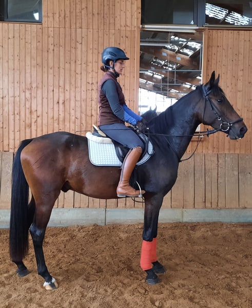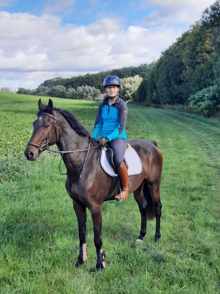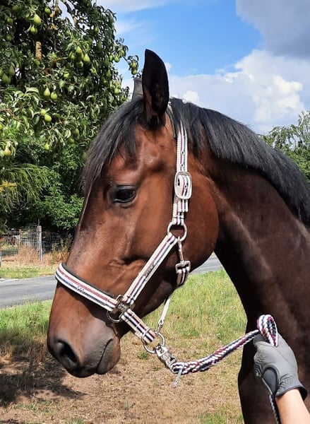 À vendre, le hongre de 3 ans "On Air B" alias Olli. Vendu en raison de la réduction de l'effectif. Il a été récemment monté, il se comporte bien en longe, connaît le travail en liberté et le saut en liberté. Actuellement, il est encore au paddock d'été avec le groupe de hongres, mais il rentre au box le soir. Le prix varie en fonction du niveau de formation. Dans les interactions quotidiennes, comme l'attache, le pansage et la conduite, il est très gentil et ouvert. Il s'entend parfaitement avec d'autres hongres. Il a été régulièrement vacciné et vermifugé, et a également été vu régulièrement par le maréchal-ferrant. Un contrôle vétérinaire peut être effectué sur demande. Pour toute question, veuillez appeler. Sa mère "St.Pr.St. Le Casira B" a été présentée dans des épreuves de saut d'obstacles de niveau M et a remporté l'examen de performance à 3 ans, participant à des compétitions jusqu'à 120. Sa grand-mère "St.Pr.St Leona Lewis" par Ludwig von Bayern porte le titre de jument primée DSP en élevage. Tous ses poulains sont des poulains primés. Ses deux filles sont également des juments primées d'État. La sœur de la mère "Lia Casira B" a été la jument réservée lors du championnat des juments saxonnes-thuringiennes à Wolfersdorf, avec des notes de 9,5 en saut en liberté. Elle a déjà eu un poulain de vente à la vente élite DSP à Darmstadt-Kranichstein. Tous les chevaux de la lignée maternelle sont bien élevés et faciles à manipuler. Aucun problème non plus lors de la montée.