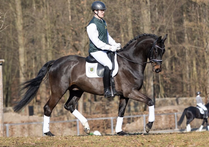 This horse is part of the 12th Sale Horse Week at Landgestüt Moritzburg, taking place from April 11th to 19th, 2026, culminating in an online auction. Faircurio impresses with its exceptional nobility, elegance, and extraordinary presence. Its three natural, expressive gaits are enhanced by an active, well-placed hind leg. Faircurio’s excellent rideability and outstanding temperament make him a promising prospect for dressage, suitable for both ambitious amateurs and young riders. He made an impressive debut at his first competition of the year, securing a placing.