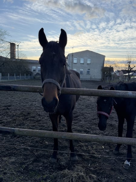 Springpartner abzugeben Ich habe eine jetzt 4 Jährigen Wallach den ich leider aufgrund von Zeitmangel abgeben muss. Abstammung: Canthalou (vom Corthagos) x Leonie VL Er wurde 3 jährig bereits schonmal angeritten und dann anschließend nochmal auf die Koppel gestellt War beim anreiten auch super artig. Stockmaß ca. 1,73 Putzen kennt er und wird aktuell täglich von Box zur Koppel geführt auch alles ohne Probleme. Krankheiten, Befunde oder Ähnliches hatte er bisher auch nicht. Er macht einen super Sprung, kann aber auch drei gute Grundgangarten vorweisen