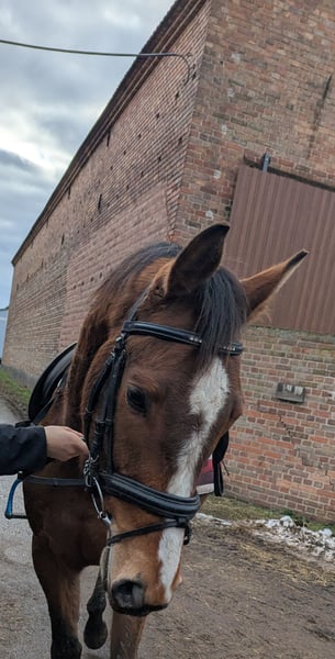 Zum Verkauf steht ein wunderschöner 5jähriger brauner Wallach. Noch am Anfang seiner Ausbildung stehend überzeugt er mit einwandfreiem Charakter, geht zuverlässig ins Gelände und ist fein zu reiten in der täglichen Arbeit. Er ist charakterstark, freundlich im Umgang und bestens geeignet für den Turniersport oder den ambitionierten Freizeitreiter. Erste Sprünge unterm Reiter hat er bereits absolviert und auch beim Freispringen macht er eine gute Figur. Um Reittourismus vorzubeugen behalten wir uns vor, eine Gebühr von 30€ als Aufwandsentschädigung zu nehmen, die beim Kauf natürlich erlassen werden.