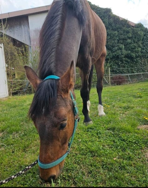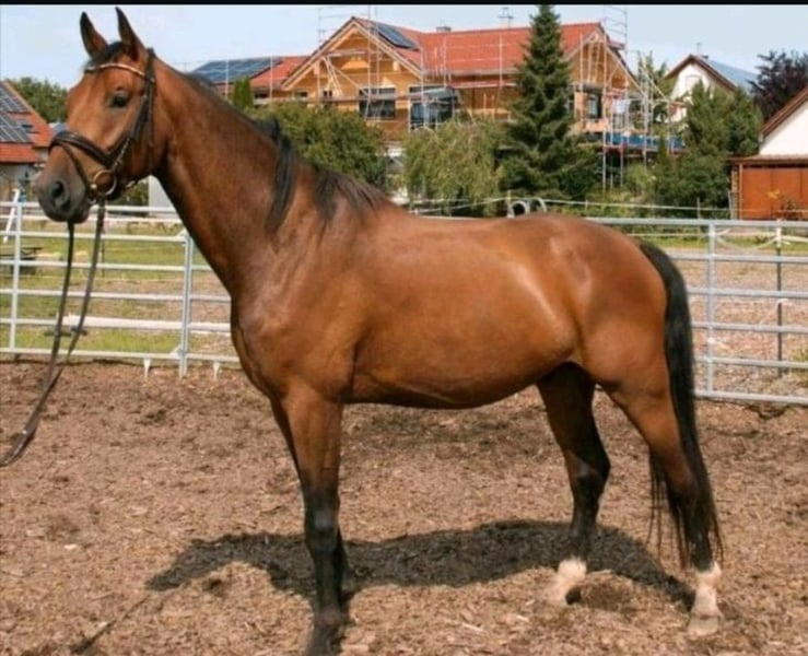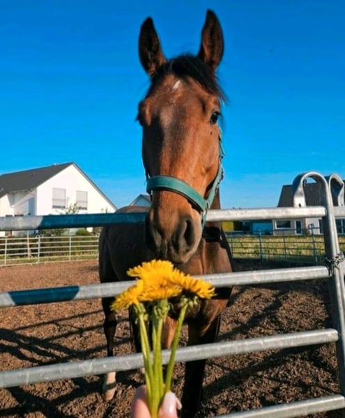 ♡♡♡Ein Pferd mit einem einzigartigen Charakter und dem Herzen am richtigen Fleck sucht sein Für-immer-Zuhause. ♡♡♡ Zum Verkauf steht ein 4 Jähriger Wallach namens Campari. - Stockmaß ~1,68m Campari wurde am 24.05.2021 geboren und wird direkt vom Züchter verkauft. Er wurde Ende 2024 schonend angeritten und machte bereits erste Sprünge unter dem Reiter. Er kennt die Arbeit in der Halle, dem Platz und dem Roundpen, wie auch das Gelände allein oder in Begleitung eines anderen Pferdes. Aufgrund persönlicher Umstände wird er aktuell jedoch nur vom Boden aus gearbeitet und das Training unter dem Reiter sollte daher langsam wieder gestartet werden. Campari wird daher als Roh verkauft. Campari's liebevoller Charakter, seine Gelassenheit, wie auch sein Arbeitswillen, machen ihn zu einem perfekten Wegbegleiter und einem einzigartigen Jungpferd. Ein Pferd welches gefördert werden möchte und Freude an der Arbeit hat. Er ist schmiede- und verladefromm, wie auch regelmäßig geimpft und entwurmt. Campari ist an den Voderbeinen ZEHENWEIT, was ihn jedoch nicht einschränkt. Ebenfalls ist er an den Vorderbeinen beschlagen. Wir wünschen uns für Campari ein liebevolles neues Zuhause, in dem er gefördert wird und zusammen mit seinem neuen Reiter/seiner Reiterin sein Pferdeleben genießen darf. Einen Menschen, der mit ihm durch Dick und Dünn geht. Aufgrund seines Alters und seines Ausbildungsstandes sollte Erfahrung vorhanden sein. Aktuell steht er in einer Paddockbox neben einer Stute und einem Shettywallach. ~Eine kleine AKU wurde durchgeführt. Ergebnisse können bei Interesse gerne besprochen werden.~ Kein Verkauf an Händler oder Reitschulen! !! Platz vor Preis !! Bei ernsthaftem Interesse freuen wir uns auf eine Nachricht. Gerne können auch noch Videos und weitere Bilder zugesendet werden.