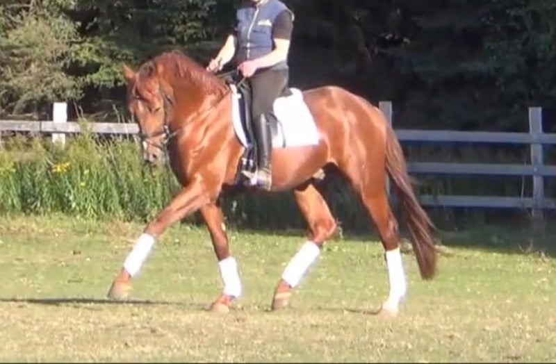 Dieser ausdrucksstarke kompakte Hengst von Escamillo x Quaterback verfügt über 3! überdurchschnittliche GGA, Nervenstärke und einem ausgeglichenen Charakter. Er stand mit zwei weiteren Hengsten zusammen neben Stuten und war dabei sehr verträglich. Er könnte somit wohl auch mit Wallachen zusammen gehalten werden. Die Halbschwester des Hengstes von Escolar war bereits sechsjährig M-erfolgreich und gehörte trotz weniger Starts sowohl 5- als auch 6-jährig zu den zehn erfolgreichen Pferden des Verbandes. Escamillo war Prämienhengst seiner Körung 2017 in Verden, legte 2018 seinen 14-Tage-Test mit der Dressurnote 9,08 ab und absolvierte 2020 seinen Sporttest unter Helen Langehanenberg mit der Siegerbewertung von 9,36. Unter der Olympia-Teamzweiten qualifizierte er sich auch fünfjährig mit einer 9,5 für die Dressurpferde-Bundeschampionate. Züchterisch gehört Escamillo schon jetzt zu den erfolgreichsten Beschälern. Quaterback, selbst Bundeschampion (Note 10,0 auf den außergewöhnlichen Trab). Der zuletzt auf Platz vier der weltbesten Dressurvererber rangierende Elitehengst stammte aus der Neustädter P-Familie und sammelte nach seinem überragenden Sieg auf dem Bundeschampionat 2006 wiederholt Titel in Dressuren bis zur schweren Klasse. Weltweite Maßstäbe setzte Quaterback allerdings nicht im aktiven Sport, sondern in der Zucht. So lieferte der Quaterman-Sohn zahlreiche gekörte Hengste sowie im Grand Prix-Sport erfolgreiche Nachkommen.