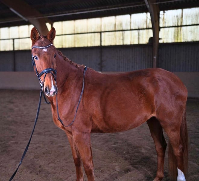 Zum Verkauf steht ein bildschöner, 5-jähriger Hannoveraner Wallach mit beeindruckender Abstammung: Vivino x Le Vivaldi x Weltmeyer Er wurde als Fohlen über eine Eliteauktion verkauft. Dieser ausdrucksstarke Youngster überzeugt mit drei überdurchschnittlichen Grundgangarten – besonders hervorzuheben sind sein raumgreifender, elastischer Trab und sein aktives, kraftvolles Hinterbein im Galopp. Der Schritt ist geregelt, fleißig und klar im Takt. Er zeigt sich stets leistungsbereit, nervenstark und mit hervorragender Arbeitseinstellung. Auch in neuer Umgebung bleibt er gelassen und konzentriert. Unterm Sattel ist er angenehm zu reiten und gibt seinem Reiter ein tolles Gefühl. Er eignet sich ideal für den ambitionierten Reiter, der ein Pferd mit Perspektive für das große Viereck sucht. Abstammungshighlights: • Vater Vivino – Sohn des Grand Prix-erfolgreichen Vivaldi, kombiniert mit Dancier und De Niro – absolute Rittigkeitsvererber! • Mütterlicherseits mit Le Vivaldi, Sandro Hit und dem Stempelhengst Weltmeyer sowie World Cup I mehrfach international bewährte Linien. Der Wallach wurde schonend angeritten und altersgemäß ausgebildet. Er bringt alles mit, was man sich für eine Karriere im Dressursport wünscht – Potenzial für die schwere Klasse ist definitiv vorhanden! Im Gelände geht er mutig vorne weg. Aufgrund seines traumhaften Charakters ist er auch für fortgeschrittene Anfänger geeignet. Er ist absolut nicht schreckhaft. Im Alter von 3 J wurde ein Züchter TÜV inkl Röntgen gemacht und war ohne Befund.