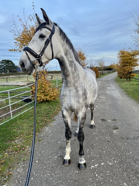 *** Please send inquiries via WhatsApp to 0176 24297968 *** Chegorio is a handsome and uncomplicated gelding. He is well-behaved both under saddle and in handling, and demonstrates great quality over fences. Chegorio comes directly from the breeder, is barefoot, currently lives in a herd of geldings in a paddock, and is worked with daily. He has not yet been competed at shows.