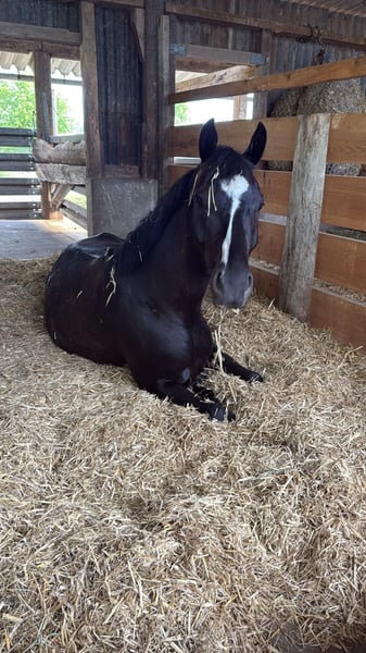 Molinero ist ein 5 jähriger, ca 170 cm großer Rappwallach mit einer interessanten Dressurabstammung. Er ist schmiede- und verladefromm, regelmäßig geimpft, Zähne wurden im Februar gemacht. Er ist ein reell gerittenes Pferd, bei dem die Bewegung super schön durch den Körper geht. Bisher locker geritten, noch nicht "angeschoben", daher auch noch völlig unverbraucht, weshalb noch vieles möglich ist. Molinero wurde aus zeitlichen Gründen noch nicht öffentlich vorgestellt, ist jedoch Turnierpferde eingetragen. Aktuell ist er barhuf, hierbei nicht fühlig, war aber auch schon beschlagen. Er steht in einer Offenstallhaltung mit 24/7 Heu. Röntgenbilder aus 2023 liegen vor. Hierbei wurde ein Minifragment im Bereich des linken Knies festgestellt. NICHT IM KNIEGELENK! Dieser Befund wurde bereits von 3 Tierärzten als "zu vernachlässigen" beurteilt. Kein Risikobefund, wird auch nie operativ entfernt werden müssen. Aktuell wird er aus zeitlichen Gründen weniger geritten. Für das Probereiten werden 30 € fällig, die jedoch bei einem etwaigen Kauf verrechnet werden.