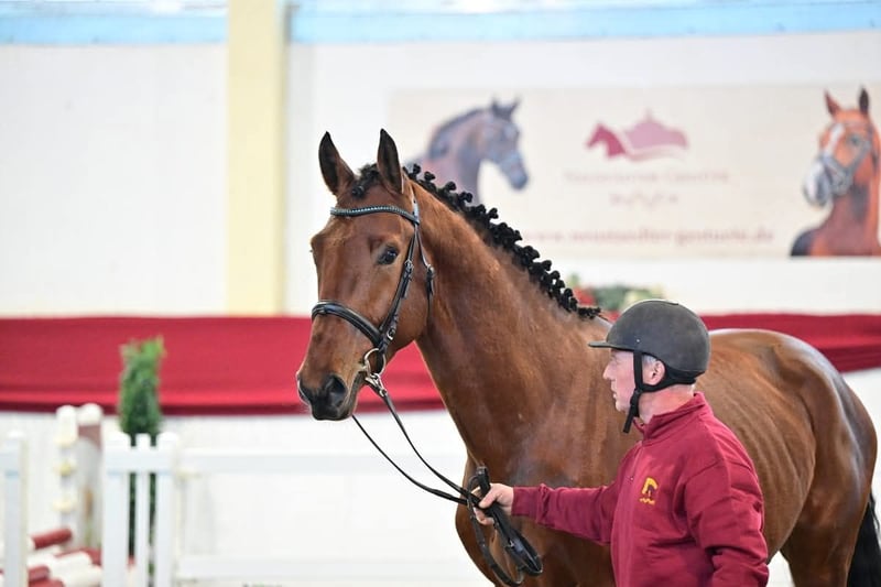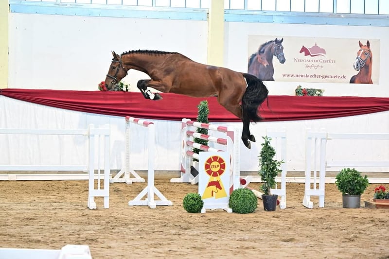 Splendido castrone con ottima attitudine al salto, alla ricerca di mani esperte! In vendita un castrone baio con grande talento per il salto, nato nel 2021. Con un'altezza al garrese di 171 cm, ha la misura perfetta per cavalieri ambiziosi. Ha già ottenuto la qualificazione immediata per il DSP Freispringchampionat 2025 a Lipsia, dove ha dimostrato sicurezza e padronanza del salto, senza lasciarsi intimidire dall'ampia cornice. È dotato di riflessi pronti e grande capacità di valutazione durante il salto. Il suo fratellastro Higgins Red è già vincitore in competizioni internazionali di salto. Il castrone è in ottima salute, con radiografie eccellenti disponibili! Barneby si trova in addestramento di base e ha un carattere amichevole. Per interessati o ulteriori informazioni, sono a disposizione. Visite e prove di salto su appuntamento.