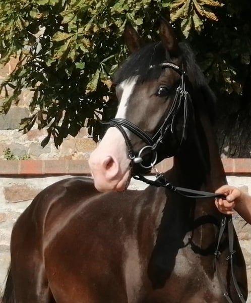 Unser Bugatti SB ist ein echter Hingucker - schön, auffällig und mit absoluter Wiedererkennungsgarantie! Bugatti ist bei uns geboren, menschenbezogen aufgewachsen und wurde zur professionellen Ausbildung in das Brandenburgische Haupt- und Landgestüt in Neustadt/Dosse gegeben. Dort wurde er Ende 2023 schonend und altersgerecht angeritten. Er ist ein kleiner Streber, absolut unkompliziert und begeistert mit seinem entspannten Wesen. Er zeigt drei sehr gute Grundgangarten und hat auch schon ein paar kleine Sprünge in der Freispringbahn absolviert, wobei er mit viel Übersicht bei der Sache war. Da er auf einem Bauernhof geboren wurde und aufgewachsen ist, sind Maschinen wie Traktoren, Hoflader, Mini-Bagger bis hin zu Laubbläsern und Kreissägen absoluter Alltag für ihn. Er ist dabei aufgeschlossen und beobachtet das Geschehen mit totaler Gelassenheit. Der Umgang mit Stuten ist kein Problem - im Stall war seine Pferdebox zwischen zwei Stuten und seine Mutter (mit Fohlen) stand direkt gegenüber. Derzeit befindet er sich in einem gemischten Stall mit Einzelboxen. Sein Vater der Neustädter Hengst Blanc Pain/T. war in der Dressur Kl. S siegreich. Im Jahr 2021 wurde Blanc Pain aufgrund seiner überdurchschnittlichen Eigenleistung im Sport sowie der Qualität seiner ersten beiden Fohlenjahrgänge vom Trakehnerverband mit dem Titel Elite-Anwärter ausgezeichnet! Im Jahr 2024 wurde ein Sohn des Blanc Pain zum Siegerhengst der Trakehner-Körung in Neumünster! Der Vollbruder von Bugatti´s Mutter "Lord Capri SB" konnte bereits seine ersten S-Platzierungen in der Dressur mit seiner Besitzerin sammeln, worauf wir sehr stolz sind. Aufgrund seiner Präsenz und seiner sehr guten Grundgangarten können wir uns Bugatti auch im Fahrsport im Einspänner oder Passgespann sehr gut vorstellen.