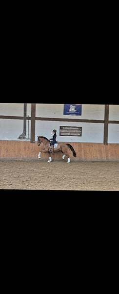 Temperamentsüberlegener 6 jähriger Wallach im Hengsttyp stehend. Wer auf der Suche nach einem Pferd ist auf den sowohl bei der dressurmässigen Arbeit, als auch im Gelände immer Verlass ist, wird hier fündig. Täglich motiviert, super brav, nicht kuckig, reell ausgebildet, tolle Anlehnung, gute Grundgangarten, sicher in den Lektionen bis L**, im Umgang artig, und im Gelände auch mit Trab und Galopp , und auch über Sprünge auch für schwächere Reiter gut zu bedienen. Ein super Ausbildungspferd das jeden Tag gefallen will. Vb 35🥕 Gerne in 97285 Röttingen anschauen kommen. Bitte telefonisch melden unter 0179 7002982