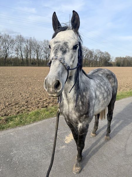 Merlin – 6-jähriger Sportpartner mit Potenzial (Deutsches Sportpferd / Sportpferdetyp) Große : 1.48 Unser sympathischer Wallach Merlin, 6 Jahre alt, sucht ein förderndes und liebevolles neues Zuhause. Bereits in jungen Jahren zeigte Merlin beim Freispringen viel Talent und Übersicht. Auch unter dem Reiter hat er bereits erste Erfahrungen im Springen gesammelt. Da wir selbst hauptsächlich aus dem Dressursport kommen, wurde dieses Talent bisher jedoch nicht weiter speziell gefördert – hier steckt also noch viel Potenzial für jemanden, der ihn in diese Richtung weiter ausbilden möchte. Merlin ist ein aufgeschlossener, Wallach, der den täglichen Umgang kennt und brav im Handling ist. Er ist sowohl den Reitplatz als auch das Gelände gewohnt und zeigt sich dort neugierig. Auch im Alltag ist er unkompliziert: - Hufschmied problemlos - Verladen klappt zuverlässig – mit einer Schüssel Müsli steigt er gerne ein - kennt den normalen Stallalltag und den Umgang mit Menschen Aufgrund von Bestandsreduzierung und Zeitmangel suchen wir für Merlin nun ein neues Zuhause, in dem er weiter gefördert wird und seine Stärken entfalten kann. WICHTIG: Da er nicht einfach ein Pferd zum sofortigen Losreiten ist, eignet er sich ideal für jemanden, der die gemeinsame Arbeit schätzt und mit ihm wachsen möchte. Aufgrund unserer zeitlichen Kapazitäten, da wir mehrere Pferde und Fohlen haben, wurde er bisher nicht umfassend gearbeitet. Interessenten sollten sich bewusst sein, dass er beispielsweise beim Auftrensen noch unsicher ist ( er geht mal zurück beim Trensen, mit dem Gebiss hat er kein Problem aber er mag es nicht so über die Ohren was gezogen zu bekommen , das bedarf weitere Übung ) und einem muss bewusst sein , dass er weitere Schulung hinsichtlich Gleichgewicht und Dressurarbeit braucht. Wer ein Pferd sucht, an dem man noch gezielt arbeiten und wachsen kann, findet hier den richtigen Partner. Uns ist wichtig: Platz vor Preis. Keine Händler und keine ängstlichen Reiter – Merlin ist ein junges Pferd und benötigt eine sichere, faire Hand sowie weitere Ausbildung. Da wir ihm zeitlich nicht gerecht werden , stand er zuletzt und müsste wieder ins Training kommen. Dazu bei ernsthaften Interesse mehr und darum wird er auch weit unter Wert verkauft ! Wenn du einen sympathischen, talentierten Partner für die Zukunft suchst, freuen wir uns über eine Nachricht. Fürs vorstellen nehmen wir 25€.