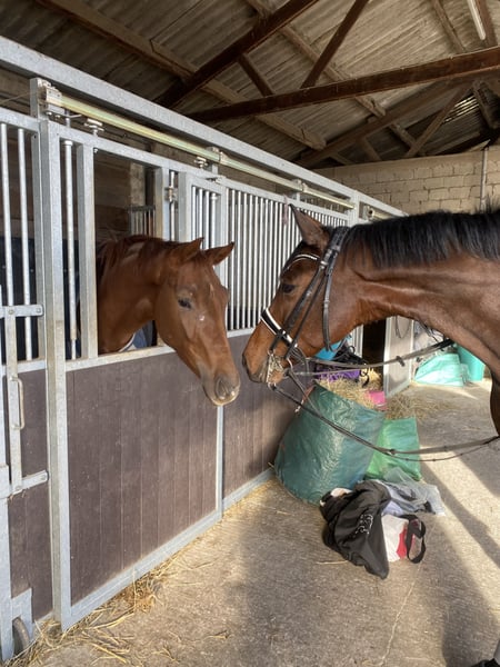 Herzensbrecher, Herzenspferd und toller Kumpel in liebevolle und fördernde Hände zu verkaufen! Wunderschöner, braver 7j brauner Wallach von Franklin x Cormint mit einem Stockmass von 166cm. Er ist gleichermaßen, seiner Abstammung entsprechend, für Dressur, Springen und Vielseitigkeit geeignet. Auch als Nachwuchspferd für den Fahrsport könnte ich ihn mir sehr gut vorstellen. Erst spät angeritten konnte er sich in seiner ersten Turniersaison mehrfach in A* und A** Dressur sowie Dressurpferde A und L platzieren und war auch direkt im Springen platziert. Im Gelände ist er zeitbedingt noch unerfahren aber sehr lieb! Auch durchs Wasser und über die ersten Natursprünge ist er direkt mit Freude gegangen. Er ist sehr menschenbezogen, liebt es zu kuscheln und beschäftigt zu werden. Er zeigt sich bislang mit einfach jedem Pferd super verträglich! Aktuell wird er aufgrund Zeitmangel meinerseits von einem 11j Kind mitgeritten und zeigt sich auch da sehr lieb und nervenstark. Generell verfügt er über eine tolle Arbeitseinstellung mit angenehmen Go und dazu mega sitzbequem! Er verfügt über gute Röntgenbilder von Ende 2024. Er macht jeden Tag Freude, und bringt einen oft zum Lachen unser kleiner Quatschkopf! Nur Langeweile ist nichts für ihn. Er liebt es, täglich seinen Job gut zu machen . Da ich noch 3 weitere Jungpferde habe, suche ich für diesen unverbrauchten Goldschatz ein förderndes 5 Sterne Zuhause Videos können in den nächsten Tagen gerne verschickt werden! Platz vor Preis! Privatverkauf Anfragen bitte per WhatsApp 015755032045