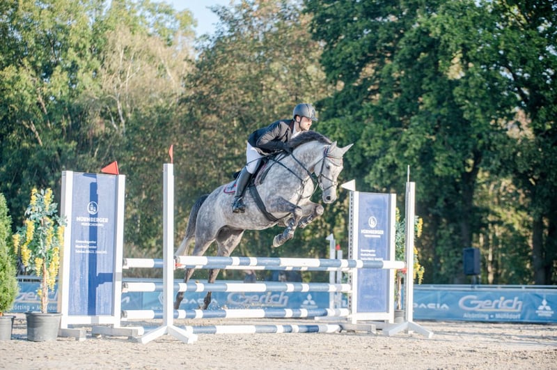 Contarios is a 6-year-old gelding by Cayado out of La Pilot x Daimler, standing approximately 166 cm at the withers. Contarios has already won numerous classes in the A show jumping category and has been placed multiple times in the L category. He impresses particularly with his excellent rideability and exceptional technique over fences. He is very well-behaved in handling and can be ridden alone. Due to his rideability and compact build, he is ideally suited as a suitable horse for women and girls. His mother, Dellarosa, was personally trained up to 1.40 m show jumping level. From the dam line of Duela, several successful sport horses have been produced. X-ray examinations from 2022 are available and show no findings.