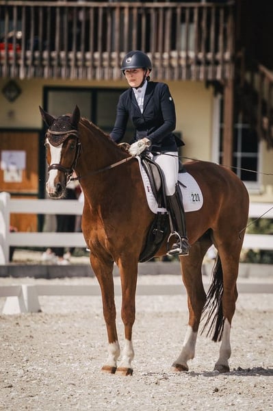 Strahli est venu chez moi à l'âge d'un an et demi, car j'ai été immédiatement tombé amoureux de lui lorsque je l'ai vu pour la première fois ! Il se distingue non seulement par son apparence élégante, mais aussi par son caractère amical et câlin. Il maîtrise déjà les leçons de niveau M avec assurance et effectue vraiment un joli saut. Il apprécie particulièrement les longues promenades à travers la forêt. C'est un véritable polyvalent et il est toujours léger à monter ☺️ Très adapté à l'élevage en groupe, car il est super sociable et s'entend avec tout le monde. Je ne le laisse partir qu'avec un cœur très lourd et vraiment seulement dans un foyer aimant d'un cavalier de loisir ambitieux, de préférence avec des ambitions de compétition, mais cela ne doit pas être la priorité. Malheureusement, il a un constat depuis son jeune âge, c'est pourquoi il est proposé à un prix bien inférieur à sa valeur. Pour plus d'informations, n'hésitez pas à me contacter par téléphone.