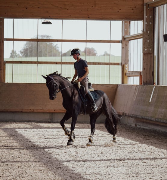 Wir verkaufen im Auftrag der Besitzer diesen 2018 geborenen Rapp Wallach von Baron x Samarant x Donnerhall. „Brillant" ist ein spitzen Dressurpferd ohne wenn und aber. Ende 4 jährig wechselte er hochpreisig über die Verbandsauktion des DSP zu seiner jetzigen Besitzerfamilie. Die letzten Jahre wurde er dort weniger stark gefördert und überwiegend von der Tochter geritten, was er trotz des noch relativ jungen Alter bestens funktioniert hat. Nun befindet er sich seit etwas mehr als einem halben Jahr wieder in professionellen Beritt und wird immer sicherer in den Lektionen der Klasse L. Brillant überzeugt mit drei durchweg sehr guten Grundgangarten. So wurde er 4jährig gleich zweiter in seiner ersten Reitpferdeprüfung mit Noten bis 8,5. Momentan ist er auf sehr sicherem A-Niveau und ganz aktuell (Mitte Februar) auch auch gegen sehr starke Konkurrenz in Darmstadt Kranichstein platziert. Er beherrscht bereits ziemlich sicher den Außengallop und Kurzkehrt. Einem erfolgreichen Start in der Klasse L sollte dieser Saison nichts im Wege stehen. Wenn man ihm noch etwas Zeit für Kraftaufbau gibt, damit er seinen Körper optimal einsetzen kann, wird man es noch sehr weit mit ihm bringen. Er ist ein Rohdiamant der noch weiter geschliffen werden möchte und für seine 8 Jahre absolut unverbraucht. Sein gekörter Halbbruder DSP Define Dynamic (v. Danciano) ist mittlerweile S siegreich mit Helen Langehaneberg und gewann unter Lisa Horler dreijährig das Würtemberger und das Süddeutsche Landeschampionat, vierjährig holte er dort nochmal Bronze. Auch im Umgang ist Brillant ein echtes Goldstück: Waschplatz, Schmied und Verladen meistert er ohne Probleme. Selbst alleine ins Gelände stellt mit ihm keine große Herausforderung da. Wir denken er passt am besten zu einem Amateur, der Spaß an vielseitiger Dressurarbeit hat und ein richtiges Spaßpferd sucht. Ein älterer TÜV liegt vor, ein neuer kann gerne bei Intresse gemacht werden. Wir freuen uns auf Ihre Kontaktaufnahme und schicken bei Interesse gerne noch weitere Bilder und Videos!