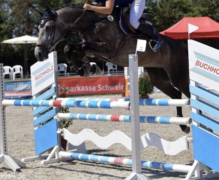 With a heavy heart, I have to part with my mare due to lack of time during my studies. Lizzy is an incredibly steady and confident mare with whom you can do anything! I bought her over four years ago as a young girl, and she taught me everything about proper jumping. She is absolutely suitable for amateurs and the perfect schoolmaster for learning to jump. She has competed up to novice (L) level and has the potential for medium (M) with further training. Due to my busy schedule, her last competition was some time ago, but she has always been ridden and jumped by my trainer, so she remains fully in training and would be ready to compete again immediately. She has always been very well-behaved and reliable at competitions. Throughout our time together, she has never refused a jump and always helps me out of bad distances, making her very clear-headed and eager to get to the other side! She also enjoys long hacks. She is very compatible with other horses and tends to be somewhat lower in the hierarchy. Lizzy was purchased as a foal by my trainer, and I took over her at age six, so she has never experienced anything negative and is very people-oriented. She would be suitable for someone who wants to improve their jumping skills or for someone looking for a very solid competition horse that you can trust completely. Accessories can be purchased together. In handling, she is also absolutely well-behaved, naturally shoeing and loading-friendly. X-ray images from 2021 are available; she has always been dewormed and vaccinated. Throughout her entire life, she has never been lame or ill, and she has never colicked or experienced anything similar!