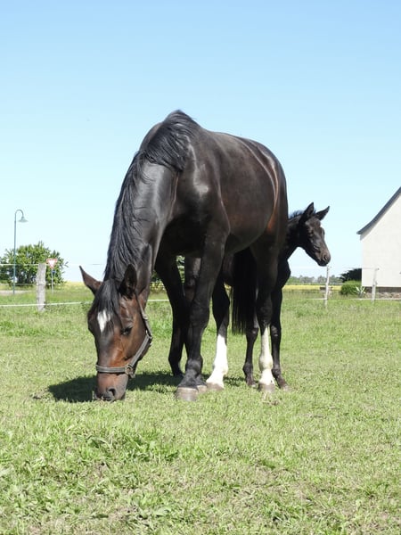 Due to a reduction in stock, she is for sale. Beautiful, large-framed mare by Foundation out of Benetton Dream x Donnerhall x Bolero. Standing at 1.74 m, she is 10 years old. As a young horse, she was lightly ridden before entering breeding. She has produced four foals with us (one with her previous owner) and has always foaled without complications, proving to be an excellent mother. This year, she had a filly but was not bred again. Short video clips are available and can be sent upon request. Please feel free to contact us directly for any further questions.