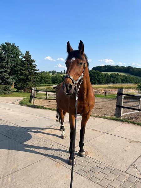 Lisola has received good training in dressage and show jumping. She was first backed in 2008, as she had her third foal. She can still be ridden age-appropriately, 2 times a week, and has 2 sessions of groundwork. She is safe in the field and is well manageable. She is accustomed to box housing with daytime turnout and paddock. Not suitable for open stabling - important!!! Group maximum of 4 horses. Since October 2023, she has been diagnosed with Chushing's, but is well managed with 3/4 of a tablet. A horse that brings a lot of joy in work. I wish for a calm home for her, where she can stay until the end.