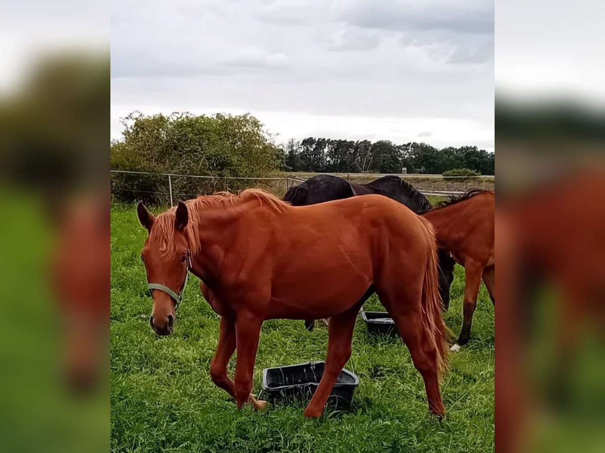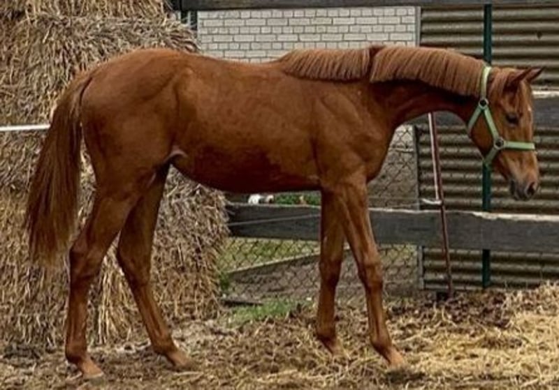 Zum Verkauf steht eine elegante 2-jährige Stute von Comanchero (v. Comme Prèvu - dem Dreiviertelbruder zu Comilfo Plus (Christian Ahlmann)) aus einer Halbblutstute von Chap I (v. Cellestial), welche sich locker und leichtfüßig in der Bewegung zeigt. Die junge Dame (geb. 04/2024) besticht nicht nur durch ihre beeindruckende Erscheinung in besonders schicker fuchsfarbener Jacke sondern auch durch ihren Charme und liebenswerten Charakter. Vater Comanchero, der bei den Oldenburger Hengsttagen 2021 gekört wurde, präsentiert sich ausgestattet mit großer Übersicht, unendlichem Vermögen und voller Kraft. Seine raumgreifende Galoppade und sein schicker Typ machen ihn zum absoluten Hingucker. Gepaart mit bester Rittigkeit und Einstellung ist er auf Hof Sosath die große Hoffnung für den schweren Springsport. In seinem ersten Turnierjahr gewann Comanchero mit 8,6 die Einlaufprüfung zum Championat der vierjährigen Springpferde in Rastede und platzierte sich im Finale in seiner ersten Springpferde L. Den Kurz-Veranlagungstest in Vechta absolvierte er als bester vierjähriger Hengst mit der Gesamtnote 8,44. 2023 qualifizierte sich Comanchero für das Bundeschampionat und platzierte sich in Springpferdeprüfungen bis zur Klasse M. 2024 konnte Comanchero an die Erfolge des letzten Jahres anknüpfen und sich mehrfach in Springpferdeprüfungen der Klasse M mit Wertnoten bis 8,7 hochplatzieren. Er qualifiziert sich außerdem in Westergellersen für das Bundeschampionat der sechsjährigen Springpferde. Im Rahmen der Oldenburger Hengsttage 2025 wurde Comanchero zum Hauptprämiensiegerhengst des Springpferdezuchtverbandes Oldenburg-International gekürt. Weitere Informationen zum Vater befinden sich unter: https://sosath.com/de/hengste/detail/comanchero Der älteste Nachkomme der Mutter war bereits in Youngster-Prüfungen bis 1,35 m Springen erfolgreich unterwegs und wurde in die USA verkauft. Caleas Mutter vererbt ihren Nachkommen Vermögen und eine sehr gute Technik am Sprung sowie besonderen Schick. Erfolgsstute Chakaria (2024 siegreich im Rolex Grand Prix in Aachen) von Europameister André Thieme hat ebenfalls Chap I als Vater.