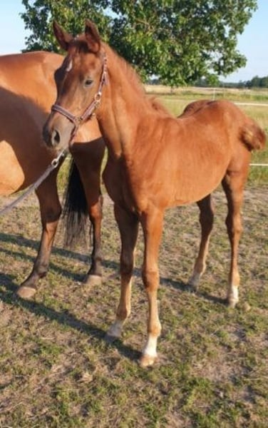 Na sprzedaż jest elegancka klaczka po Comanchero (po Comme Prèvu - trzy czwarte brata Comilfo Plus (Christian Ahlmann)) od klaczy półkrwi Chap I (po Cellestial), która jest luźna i lekka w ruchu. Młoda dama zachwyca nie tylko olśniewającym wyglądem w wyjątkowo szykownej ciemnokasztanowatej kurtce, ale także urokiem i sympatycznym charakterem. Ogier Comanchero, który otrzymał licencję podczas Oldenburg Stallion Days 2021, prezentuje się z doskonałym przeglądem, nieskończonymi możliwościami i pełną mocą. Pokonywanie terenu w kłusie i szykowny typ czynią go absolutnie przyciągającym wzrok. W połączeniu z najlepszą jezdnością i postawą, jest wielką nadzieją na ciężkie skoki w Hof Sosath. W swoim pierwszym roku pokazowym Comanchero wygrał test rozgrzewkowy przed mistrzostwami dla czteroletnich skoczków w Rastede z oceną 8,6 i znalazł się w finale swojego pierwszego testu skoczków w klasie podstawowej. Zdał krótki test predyspozycji w Vechta jako najlepszy czteroletni ogier z ogólną oceną 8,44. W 2023 roku Comanchero zakwalifikował się do Bundeschampionatu i znalazł się w testach dla młodych skoczków do poziomu średniego (M). W tym roku Comanchero był w stanie wykorzystać zeszłoroczne sukcesy i już kilka razy zajął wysokie miejsca w testach na poziomie średnim (M) dla młodych skoczków z wynikami do 8,7. Zakwalifikował się również do Bundeschampionatu dla sześcioletnich skoczków w Westergellersen. Więcej informacji na temat reproduktora można znaleźć na stronie: https://sosath.com/de/hengste/detail/comanchero Najstarszy potomek matki startował już z powodzeniem w klasach młodzieży do 1,35 m i został sprzedany do USA. Matka Calea przekazuje swojemu potomstwu umiejętności i bardzo dobrą technikę skoku, a także wyjątkowy styl. Odnosząca sukcesy klacz Chakaria (zwyciężczyni Rolex Grand Prix w Akwizgranie w 2024 r.) po mistrzu Europy André Thieme również ma za ojca Chap I. Aby uzyskać więcej informacji lub umówić się na oglądanie, prosimy o kontakt.
