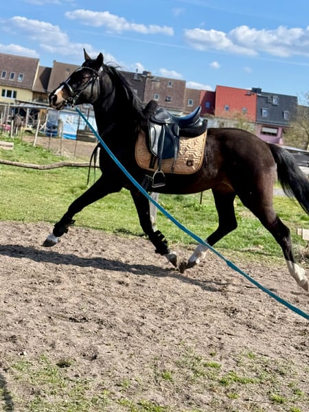 Typvolle 3-jährige DSP-Stute von Belantis II – Prämienfohlen, angeritten, brav im Umgang Zum Verkauf steht eine sehr elegante und moderne 3-jährige Deutsche Sportpferd Stute mit hervorragender Abstammung (Belantis II x Estobar NRW). Die Stute wurde als Fohlen prämiert und überzeugt durch ihre Qualität, ihren korrekten Körperbau sowie ihre überdurchschnittlichen Grundgangarten. Sie ist bereits schonend angeritten, läuft sicher unter dem Reiter und wurde auch im Gelände geritten. Dabei zeigt sie sich stets brav, unkompliziert und lernwillig. Sie ist verladefromm, kennt den Hufschmied, ist regelmäßig geimpft und gibt artig alle vier Hufe. Im täglichen Umgang ist sie sehr menschenbezogen, verschmust und absolut freundlich – kein Beißen oder Treten. Mit einem derzeitigem Stockmaß von ca. 1,67 m bringt sie ideale Voraussetzungen für den Dressursport mit. Sie ist aktuell hinten überbaut mit 1,70m und befindet sich noch im Wachstum. Geschätztes Endmaß ca 175/178. Ein tolles Nachwuchspferd für ambitionierte Reiter oder zur weiteren Ausbildung im gehobenen Dressurbereich. Preis: 13.900 € VB Nur in fördernde Hände abzugeben. Die Abgabe erfolgt aus gesundheitlichen Gründen der Besitzerin. Es ist kein Notverkauf! Für das Probereiten fällt eine Reitgebühr von 30€ an, welcher mit dem Kaufpreis bei Kauf verrechnet wird.