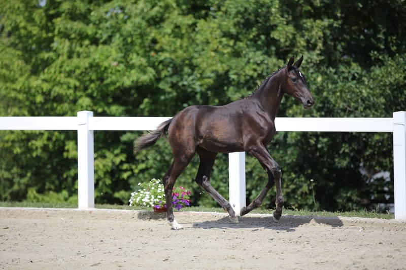 Verkaufe deutsches Sportpferd – Vielseitigkeitstalent gesucht! Zum Verkauf steht eine elegante und talentierte Stute, geboren im Jahr 2022. Die schicke Schwarzbraune überzeugt durch ihre beeindruckende Erscheinung und ihr vielseitiges Können. Mit einem Stockmaß von 168 cm bietet sie die perfekte Größe für ambitionierte Reiterinnen und Reiter, die auf der Suche nach einem zuverlässigen Partner für den Turniersport sind. Durch die Anpaarung mit dem Trakehnerhengst IVANHOE (2022 bester Trakehnerhengst der FN- Zuchtwerschätzung) an die springbetont gezogene und sportlich erfolgreiche Mutter, stehen ihnen auch züchterisch alle Türen offen. Ivanhoe’s Ulani ist bisher hauptsächlich in Bodenarbeit und an der Longe ausgebildet, ist dabei immer aufmerksam, stets bemüht alles richtig zu machen und zu gefallen. Mit der Ausbildung unter dem Sattel sind wir aufgrund des Alters der Stute am Anfang, heißt sie ist nur leicht angeritten. Somit kann der neue Sportpartner sofort mit der Ausbildung nach seinen individuellen Wünschen beginnen. Das Pferd ist gesund, gut erzogen und besitzt ein freundliches Wesen. Bei Interesse oder für weitere Informationen stehe ich gerne zur Verfügung. Ein Kennenlernen und Besichtigung sind nach Vereinbarung möglich. Ich freue mich auf Ihre Kontaktaufnahme!