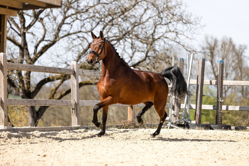 jument axée saut - jeune cheval de 2022 issue d'une mère gagnante Cette jument motivée, orientée vers le saut d'obstacles, se distingue par son attitude de travail et sa nature facile. Callina est, à son âge, déjà douce et bien montée, fine en main, et convainc déjà le cavalier lors de petits sauts. Elle a franchi ses premiers obstacles avec beaucoup de clairvoyance et d’enthousiasme. Elle ne présente aucun défaut comme des coups de cul, des refus ou des coups de tête, et est toujours volontaire, attentive et désireuse d’apprendre. Elle convient pour le saut d’obstacles, le cross ou comme partenaire de loisir facile, c’est tout simplement une jument à aimer et avec laquelle prendre plaisir. Très sociable avec l’humain, elle est ferrée et chargée sans problème. Idéale pour des cavaliers recherchant un cheval talentueux, sans défauts, qui brille aussi bien en entraînement qu’en compétition. Informations importantes : • Radiographies récentes sans anomalie, y compris du dos, disponibles. Une séance d’essai est possible à tout moment, avec une carrière intérieure. Pour toute question ou pour plus d’informations, je suis à votre disposition : Téléphone : 08531 3102826 ou 0171 6087030