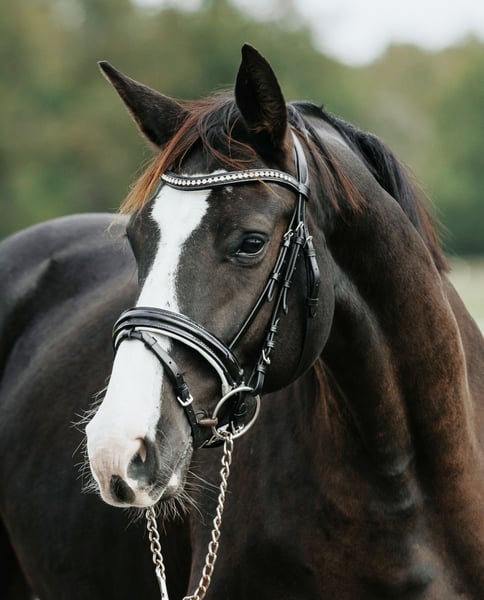 Dreamy Beauty with Family Suitability Direct from the Breeder Directly from the breeder, already X-ray inspected, with a one-year warranty for all buyers: Räubertochter is a stunningly beautiful, colorful black mare with four white legs and a blaze. If you’re looking for a horse with high recognition value and a heart of gold, you’ve come to the right place. She is an absolute treasure—both in the stable and under the rider, whether in the arena, on the training ground, or out in the field. In terms of training, Räubertochter currently competes at dressage horse class A to L level, demonstrating a particularly expressive trot extension and an outstanding walk. Thanks to her friendly nature and ease of handling, she is suitable not only for professionals and amateurs but also makes a great partner for a mother-child duo. Her sire is the Westphalian Bundeschampion and Grand Prix series winner Farewell III. Räubertochter’s dam is by the Hanoverian Decurio, who himself was successful up to S level and is renowned as a dressage sire, with over 10 licensed sons and a top breeding value of 133 (HEK). Her dam also competed successfully in sport, winning and placing in dressage tests 12 times before entering breeding. Räubertochter’s grandmother is the sister of the S-level winning Roy Rogers (see photos for pedigree details). Naturally, Räubertochter possesses all the qualities for a successful competition career, thanks to her excellent basic gaits and her incredibly rideable temperament. Good X-ray images are available. Our farm is located just 30 minutes from Berlin. Here, we raise high-quality foals in a herd environment on spacious pastures, with plenty of room and year-round exercise. With patience and care, we guide them on their path to becoming reliable riding horses. If you would like to meet Räubertochter and our young horses, or learn more about her, we look forward to your call at 03301 577 2585! *** The journey is worth it! See our other listings below for more young horses. ***