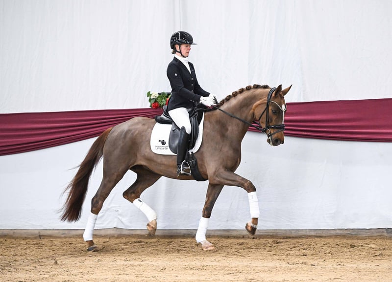 Mit faszinierender Ausstrahlung und Präsenz auftretende Tochter des Bundeschampions Be Sure. Ihre Mutter brachte anlässlich der DSP Hengsttage 2026 mit Gobal Player den gefeierten Prämienhengst „Grand Prix Spezial MT“. Noch nicht lange unter dem Sattel, aber aufgrund ihrer exzellenten Grundgangarten mit bester Perspektive für den gehobenen Dressursport. https://auktion.pzvbw.de/auctions