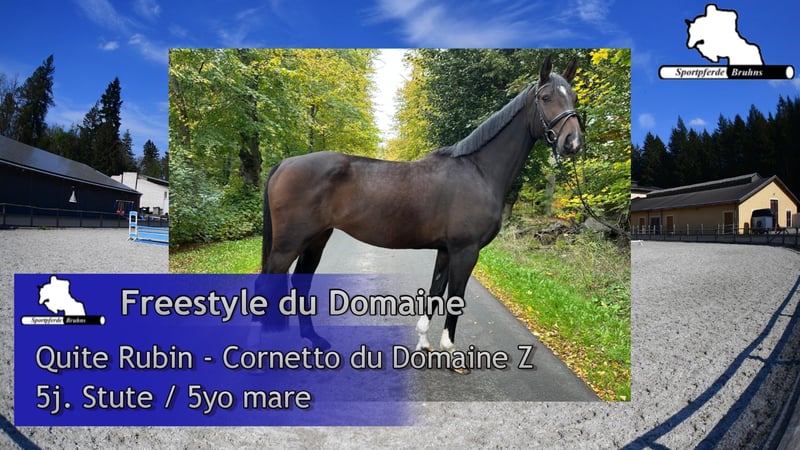 Wir bieten hier eine turnierfertige und platzierte 5jährige Stute zum weiterentwickeln und Spaß haben. Diese junge Dame ist eine kompakte edle und blütige Stute, die erst am Anfang ihrer Turnierkarriere und ihrer Ausbildung steht. Sie zeigt sich vorsichtig und leichtfüßig am Sprung und im Parcours. Ihr Pedigree gestaltet sich springbetont und leistungsorientiert, was ihr Talent genetisch bestätigt und sie auch für eine eventuelle züchterische Nutzung interessant macht.