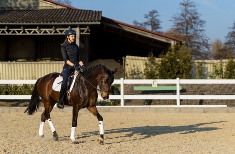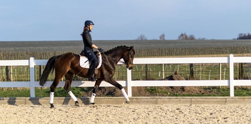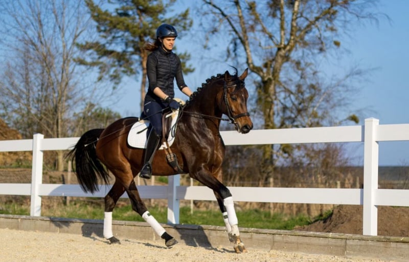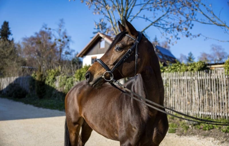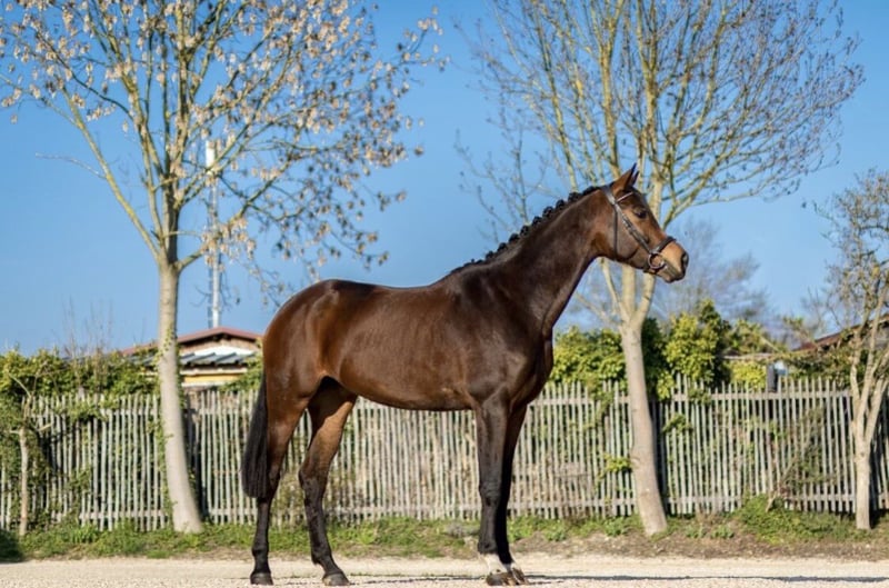 Deutsches Sportpferd – Dunkelbraune Dressurstute, geb. 2021 Zum Verkauf steht eine vielversprechende deutsche Sportpferdestute, geboren im Jahr 2021. Die elegante Dunkelbraune besticht durch ihre ansprechende Erscheinung und ihre vielversprechende Grundausbildung im Dressursport. Sie wurde roh direkt vom Züchter Birkhof gekauft und stammt vom vielversprechenden Hengst „Bohemian“. Sie ist eine gut gerittene, sehr talentierte Nachwuchsstute mit einem angenehmen Temperament und einer ausgeprägten Lernbereitschaft. Dank ihrer soliden Grundausbildung eignet sie sich ideal für ambitionierte Nachwuchsreiter oder Reiterinnen, die auf der Suche nach einem zuverlässigen Partner für den Dressursport sind. Sie konnte erste erfolgreiche Turniererfahrungen im Bereich A-Dressur sammeln. Diese junge Stute verfügt über eine harmonische Grundausstattung, drei sehr gute Grundgangarten, ist gesund, bewegungsstark und zeigt bereits erste Ansätze in der Dressur. Sie ist gut sozialisiert, freundlich im Umgang und lässt sich angenehm reiten. Eine große, einwandfreie Ankaufsuntersuchung inklusive Röntgenbilder aus Oktober 2024 ist vorhanden. Sie ist lückenlos geimpft. Boney M ist bereit für die Turniersaison. Erste Erfahrungen als Begleitpferd hat sie schon gesammelt. Sie ist sehr kinderlieb und durch das rege Hofleben abgehärtet. Auch im Gelände ist Sie sehr zuverlässig und sicher. Boney M ist eine prämierte, eingetragene Zuchtstute. Ein echtes Potenzialpferd für den gehobenen Dressursport, das noch viel Entwicklungspotenzial bietet. Für weitere Informationen oder einen Besichtigungstermin stehe ich gerne zur Verfügung.