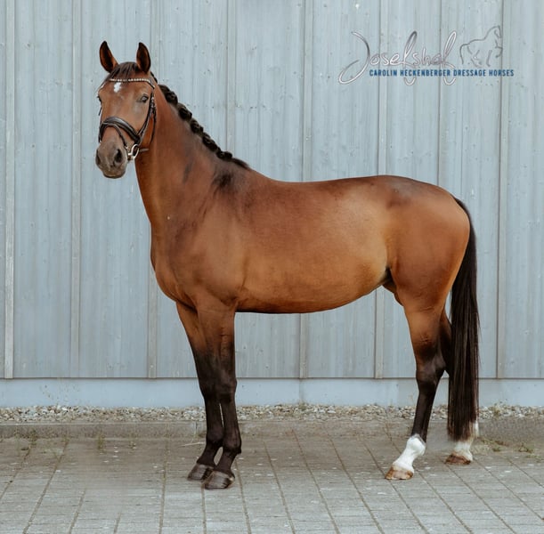 Feline ist eine fünf Jahre alte Stute, mit aller bester Einstellung zum Sport, viel Go, trotzdem immer brav und stets arbeitswillig. Sie bringt alles mit, was man sich für den großen Sport wünscht und verzaubert uns täglich mit ihrem Wesen. Ihr außergewöhnlicher Wille und ihr Fleiß machen Sie in der täglichen Arbeit so besonders. Am Turnier zeigt sie sich extrem konzentriert motiviert und sie lässt sich durch nichts und niemand aus der Ruhe bringen. Sie ist bereits in Reitpferdeprüfungen und Dressurpferde A platziert und befindet sich nun auf dem Weg zu Dressurpferde L. Diesem Pferd steht nichts im Wege im großen Sport Fuß zu fassen, da sie auch ein großes Talent für halbe Tritte hat und trotz ihres Goes super sitzbequem und versammungsbereit ist. Anfragen bitte Telefon unter 01605131938