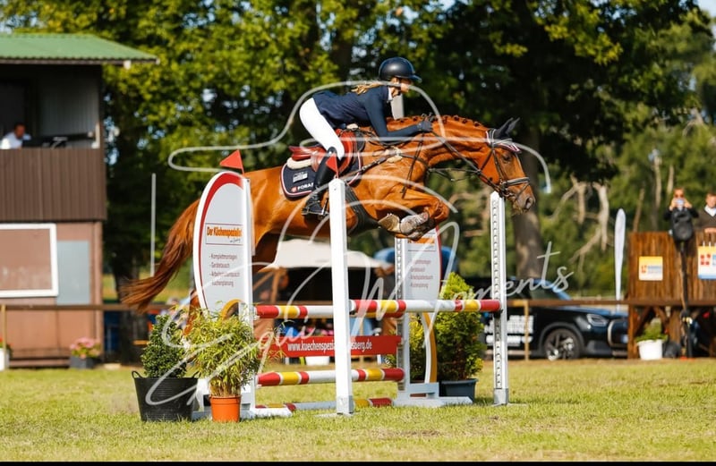**Sales Advertisement: German Sport Horse** For sale is a talented and promising mare, ideal for sports. **Features:** - **Breed:** German Sport Horse - **Gender:** Mare - **Year of Birth:** 2019 - **Color:** Chestnut - **Height:** 164 cm - **Suitability:** Show Jumping This mare impresses with her excellent movement and balanced temperament. She shows great potential in jumping and is suitable for both experienced riders and ambitious beginners who wish to grow together with her. The mare is well-mannered, well-trained, and has already gained initial experience in the course. She is healthy and regularly dewormed. Note: She has four club feet, which should be taken into account in her further training and care. If you are interested or need further information, please feel free to contact me. Viewings are possible by appointment. We look forward to your message.